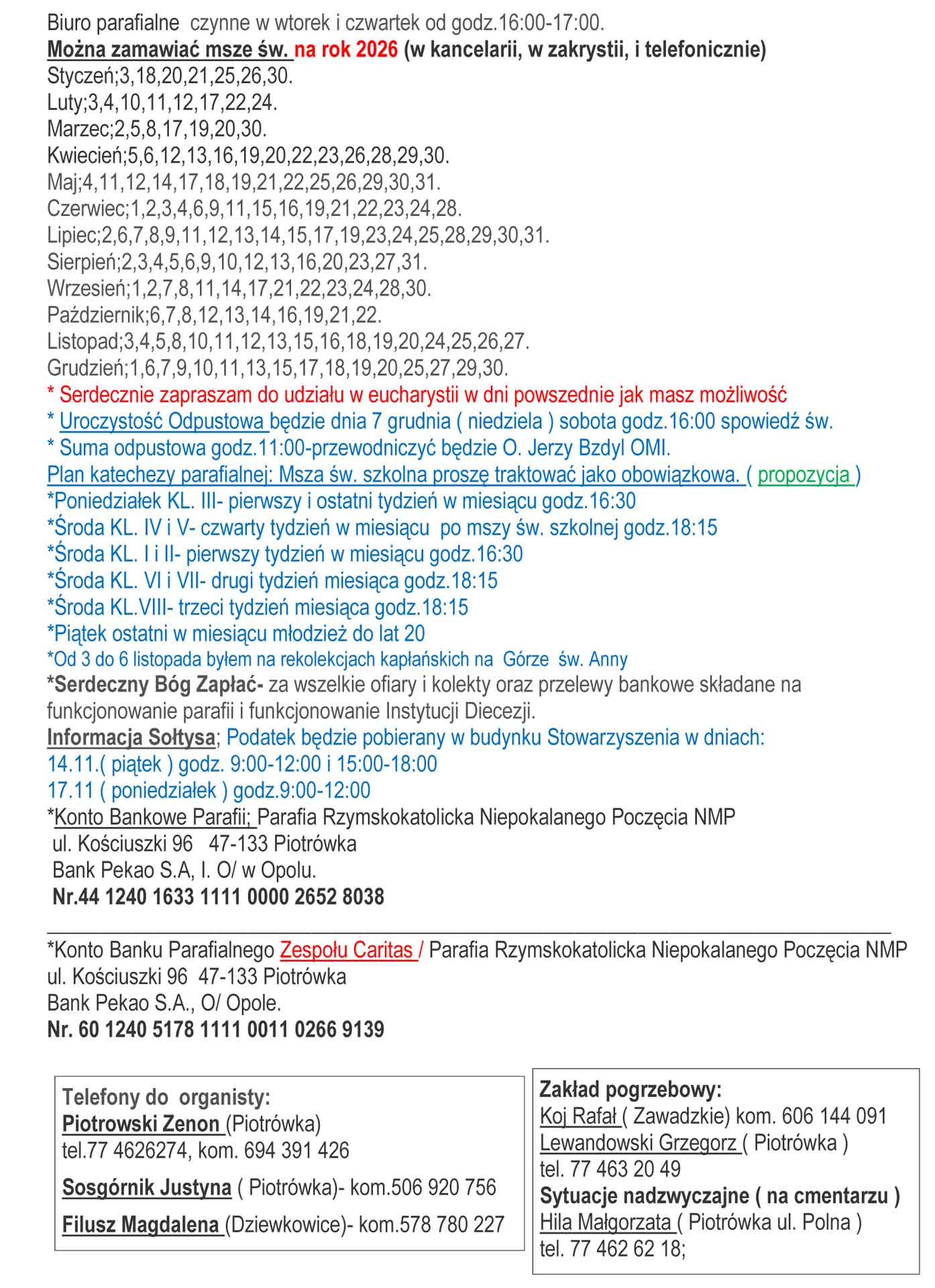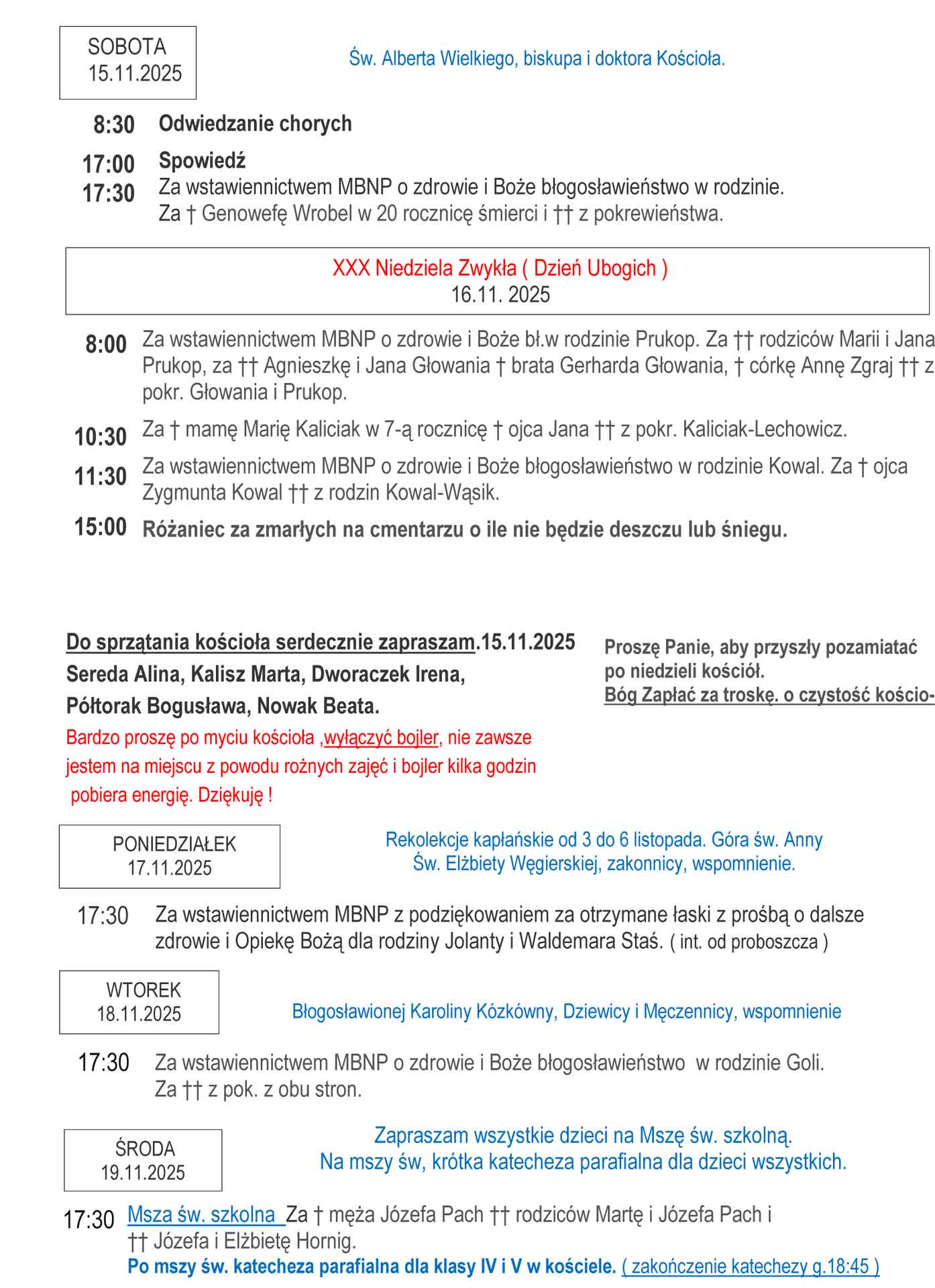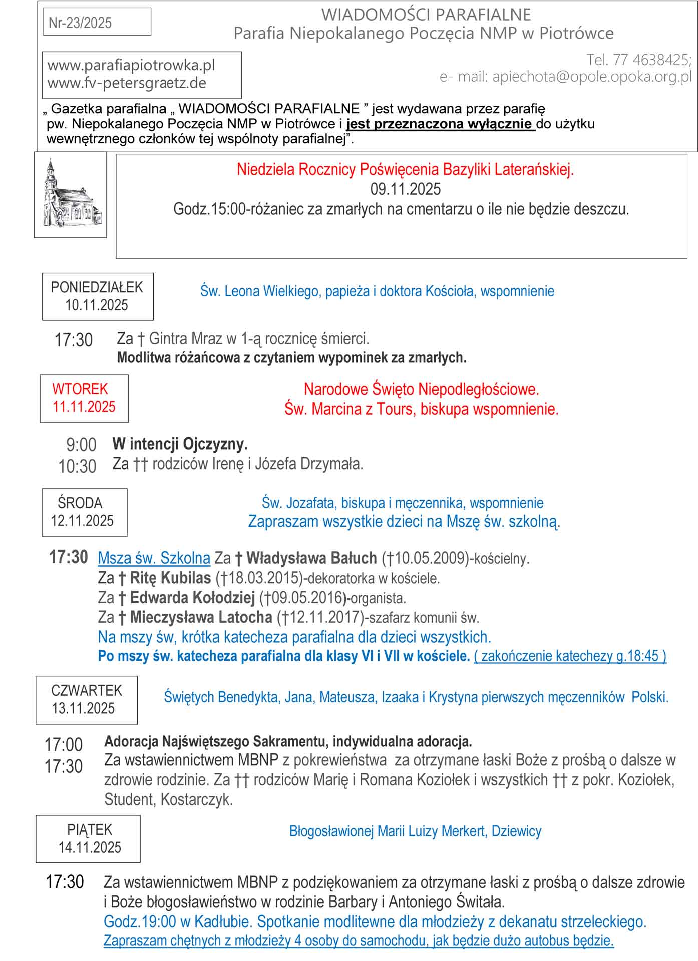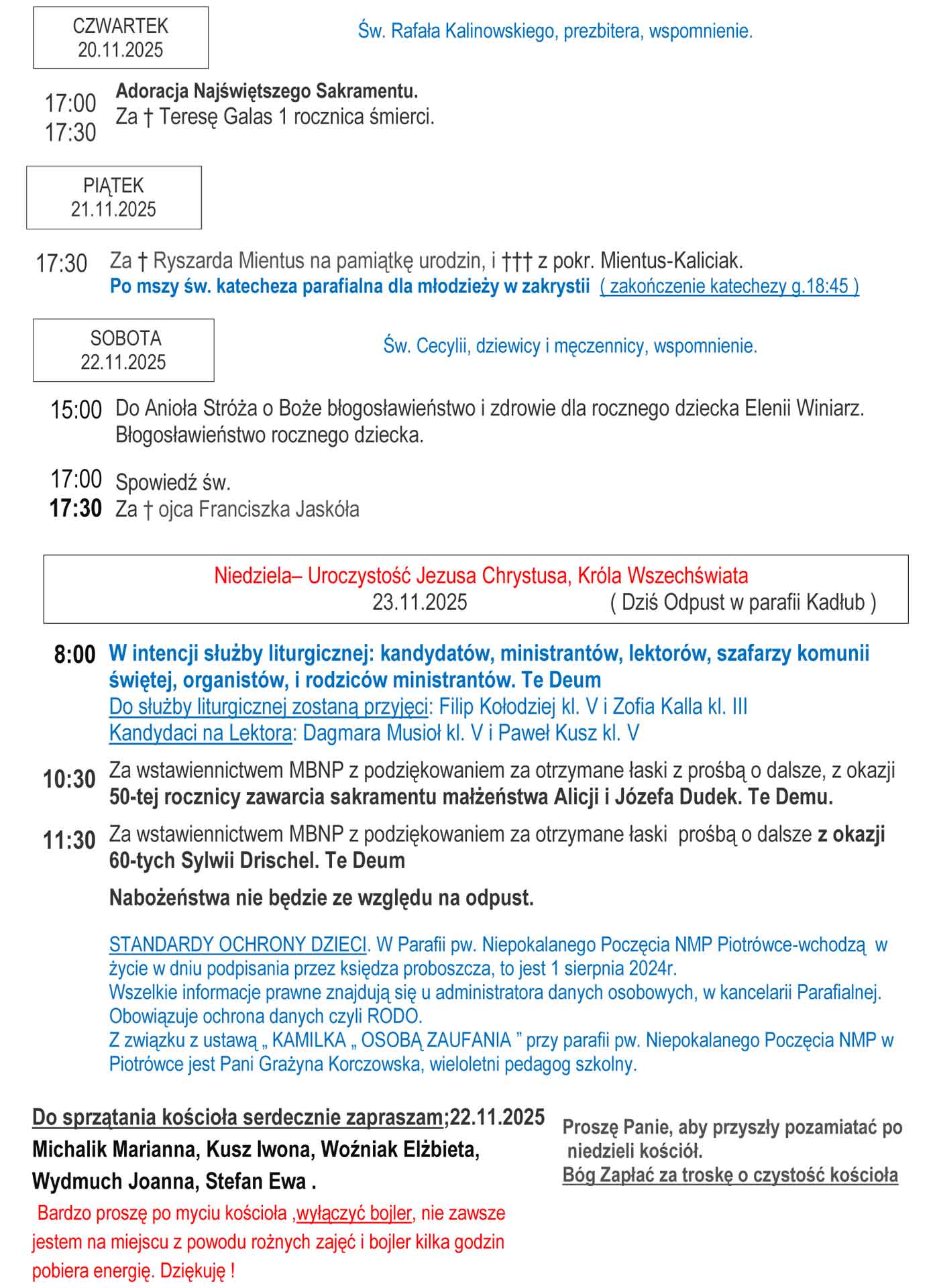 Ogłoszenia Parafialne 10 – 23.11.2025r